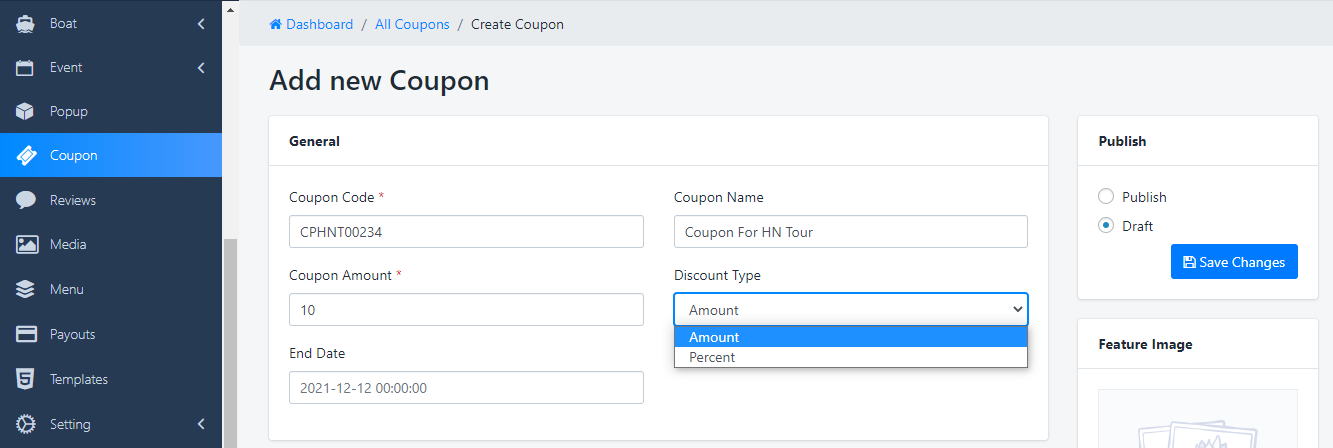 - Data de término:Data de validade do cupom – Data em que o cupom deve expirar e não pode mais ser usado. O vencimento acontece às 12h00 ou 00h00 da data escolhida