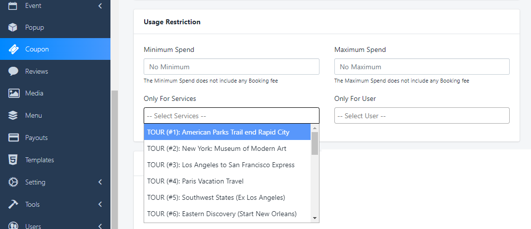 - Somente para usuários–Selecione os usuários na caixa suspensa que podem usar este cupom