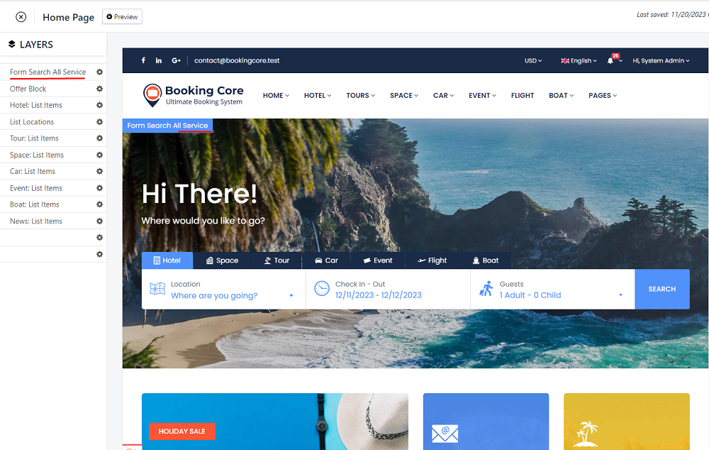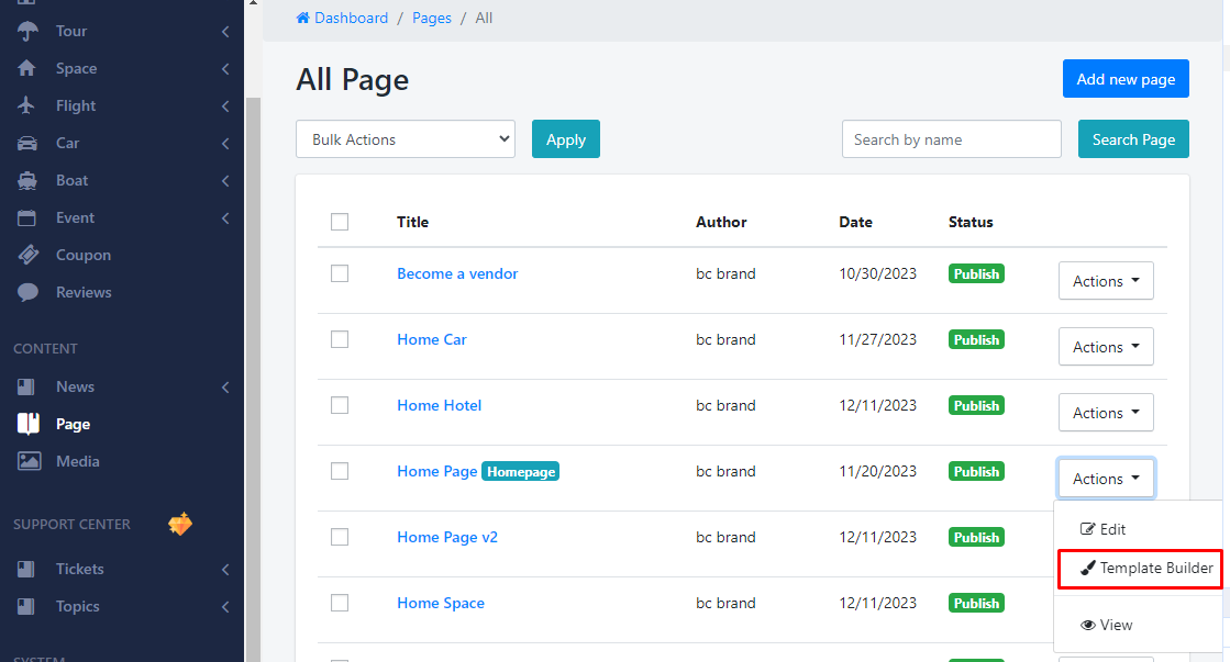 Etapa 1: Navegue até o modelo para criar o conteúdo da página inicial com os elementos principais do Booking