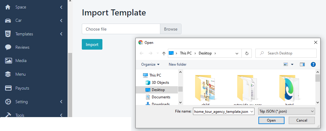 2. Após a exportação, você precisa importar pelo botão "Importar novo modelo"