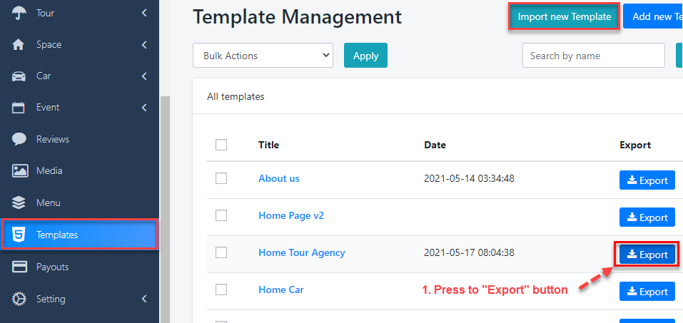 1. Vá paraModelos> veja a lista eExportarbotão e exporte o modelo que você precisa: