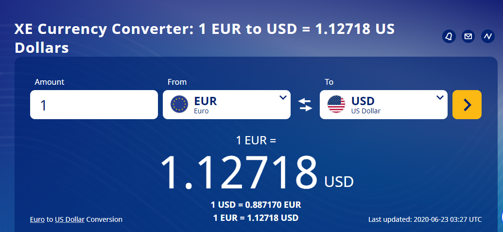 - Se a moeda principal for USD, a taxa de câmbio do EUR deve ser 1,12718