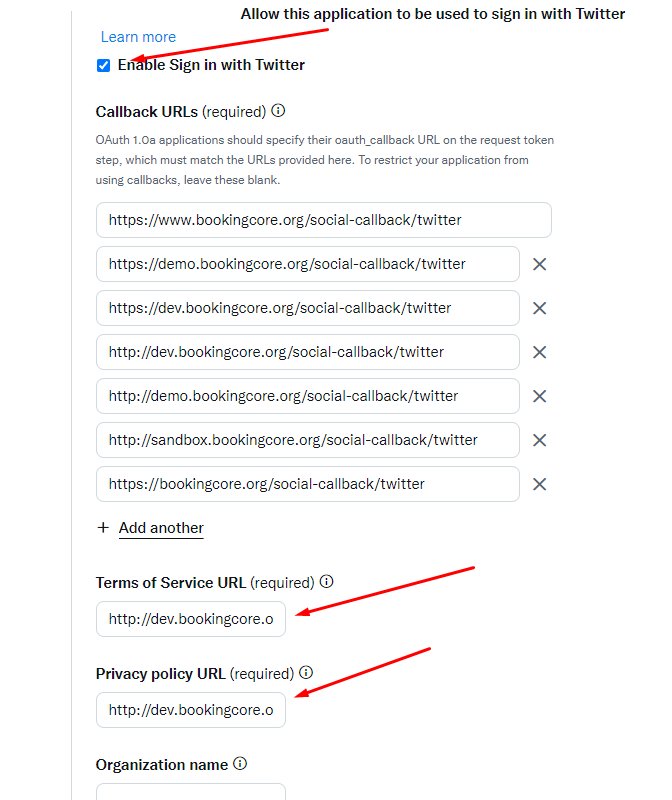 Lembre-se: Na entrada Redirect URI, é necessário usar o link:seudominio.com/social-callback/twitter