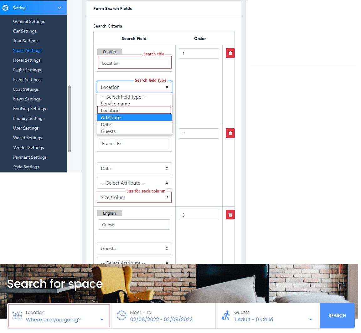 Etapa 2: Determine o tipo de campo de pesquisa que você precisa usar: Nome do serviço/Local/Atributos/Data/Preço