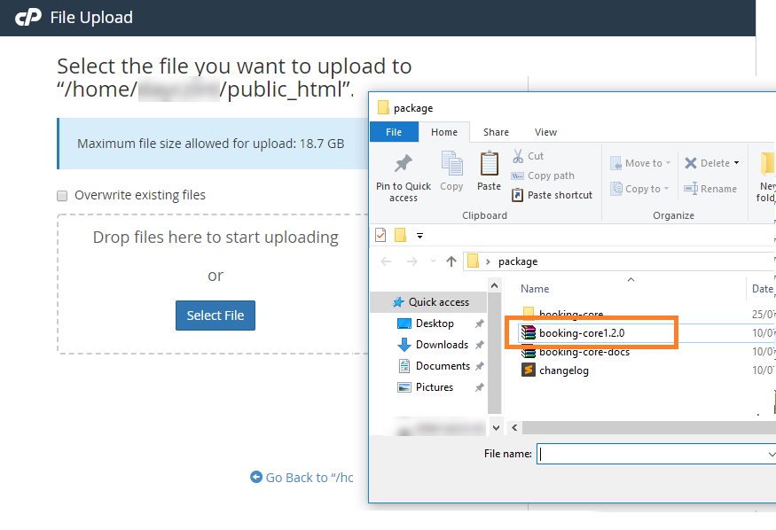 1. Carregue o arquivo bookingcore.zip para hospedagem - bookingcore.zip ~ 98 MB