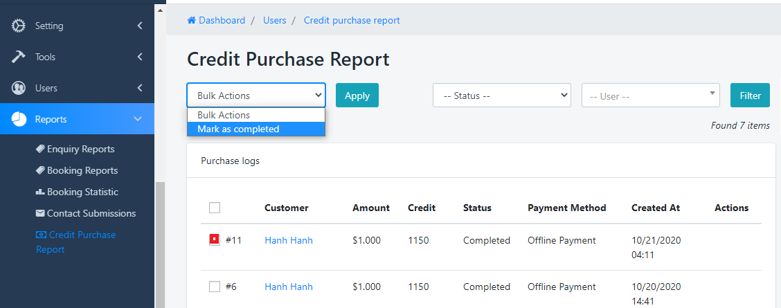 Após pagar todo o valor, o Admin fará sua compra como CONCLUÍDA e seu crédito foi recarregado com sucesso