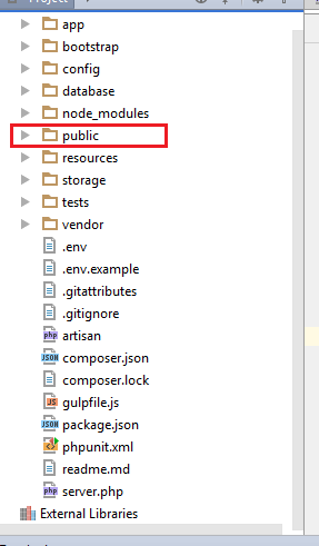 Estamos usando o framework Laravel. Como você sabe, seu diretório é assim: